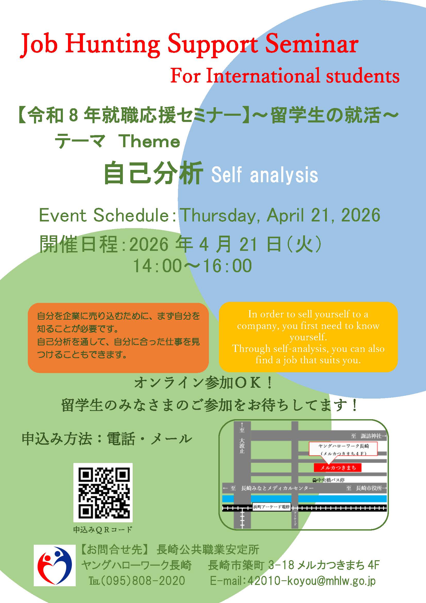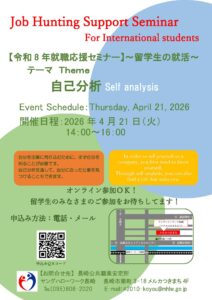 ◆留学生◆「就職(しゅうしょく)応援(おうえん)セミナー」のお知(し)らせ
